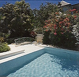 Luxuriöse Villa, um einen privaten Pool mit üppigem tropischen Garten gebaut.
